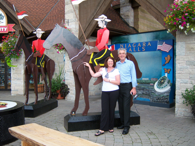 - Dave and Teresa Quinn of Australia with Canadian Mountie cut out at Souvenir City Niagara Falls