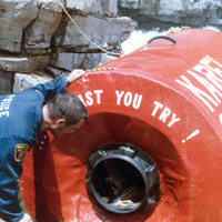 - en-CA The slogan on the side of the barrel reads It's not whether you fail or triumph, it's that you keep your word ...and at least try! ; the police officer in the photograph is from the Niagara Parks Police Department which has responsibilty for enforcement in the area of the Falls ;