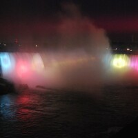 - Horseshoe Falls illuminated in varying colours of red, blue, green, yellow ; taken at 9:47 pm ;