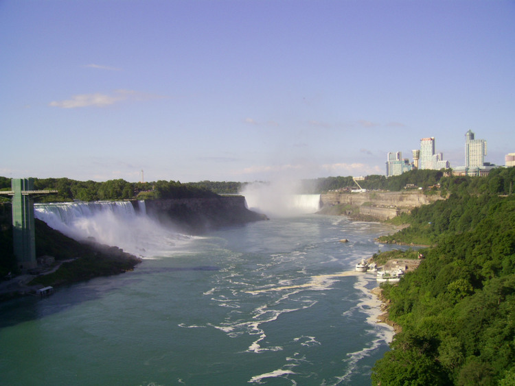 - en-CA Weather conditions in Niagara Falls when the photo was taken: Wind: south, 11 km Temp: 17° C Scattered Clouds Time: 8:28 a.m. This photo from Rainbow bridge, where concrete meets steel part of bridge.