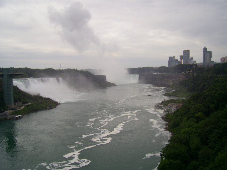 - en-CA Weather conditions in Niagara Falls when the photo was taken: Wind: southwest, 15 km Temp: 18° C Overcast Time: 8:39 a.m. This photo from Rainbow bridge, where concrete meets steel part of bridge.