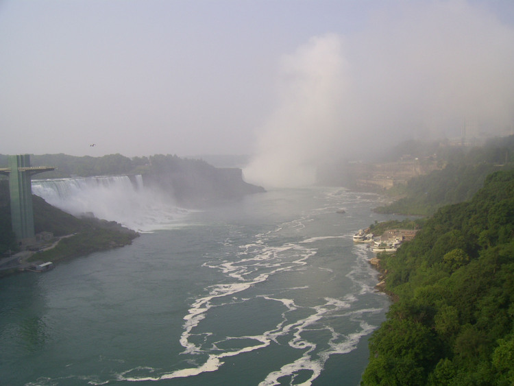 - en-CA Weather conditions in Niagara Falls when the photo was taken: Wind: no wind Temp: 21° C Scattered clouds Time: 8:28 a.m. This photo from Rainbow bridge, where concrete meets steel part of bridge.