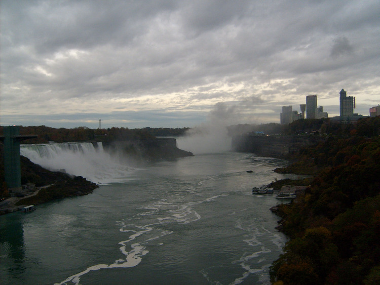 - en-CA Weather conditions in Niagara Falls when the photo was taken: Wind: east, 13 km Temp: 8° C Cloudy Time: 8:47 a.m. This photo from Rainbow bridge, where concrete meets steel part of bridge.