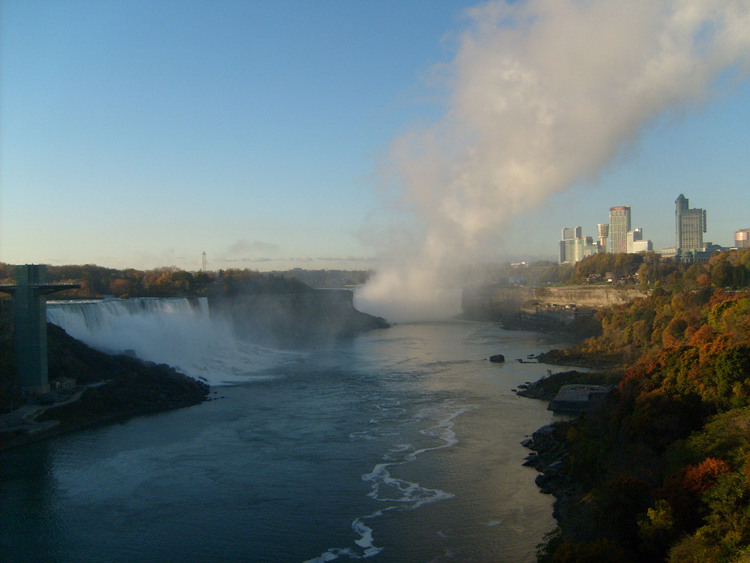 - en-CA Weather conditions in Niagara Falls when the photo was taken: Wind: calm Temp: 1° C Cloudy Time: 8:42 a.m. This photo from Rainbow bridge, where concrete meets steel part of bridge.