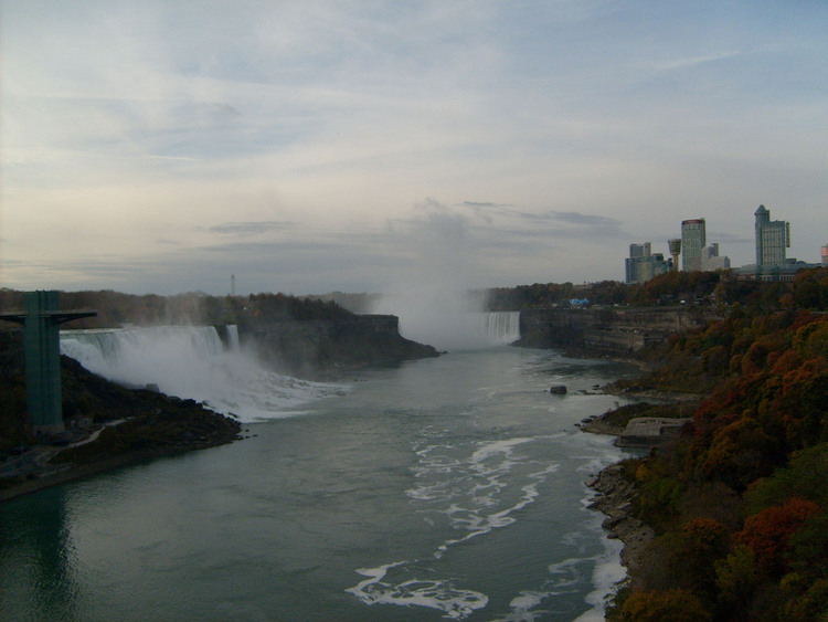 - en-CA Weather conditions in Niagara Falls when the photo was taken: Wind: west southwest, 11 km Temp: 3° C Cloudy Time: 8:25 a.m. This photo from Rainbow bridge, where concrete meets steel part of bridge.