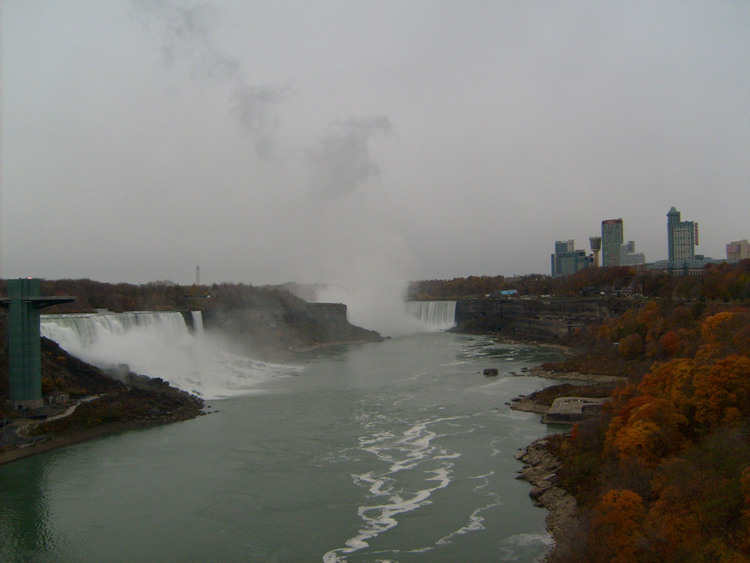 - en-CA Weather conditions in Niagara Falls when the photo was taken: Wind: southwest, 6 km Temp: 1° C Overcast Time: 8:27 a.m. This photo from Rainbow bridge, where concrete meets steel part of bridge.