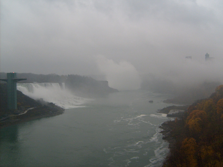 - en-CA Weather conditions in Niagara Falls when the photo was taken: Wind: west, 15 km Temp: 12° C Drizzle Time: 8:36 a.m. This photo from Rainbow bridge, where concrete meets steel part of bridge.
