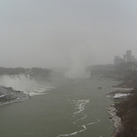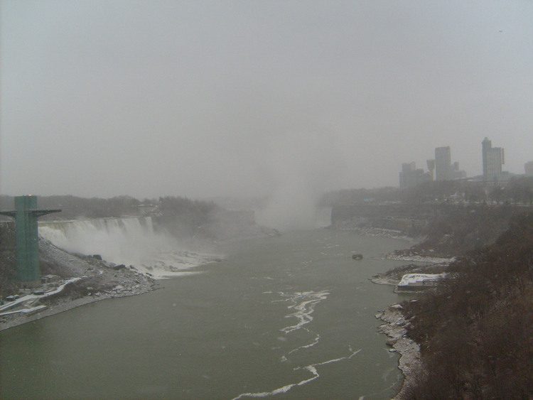 - en-CA Weather conditions in Niagara Falls when the photo was taken: Wind: north, 15 km Temp: -7° C Heavy Snow Time: 8:41 a.m. This photo from Rainbow bridge, where concrete meets steel part of bridge.