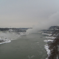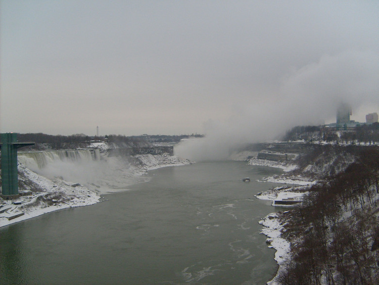 - en-CA Weather conditions in Niagara Falls when the photo was taken: Wind: south southeast, 19 km Temp: -2° C Light freezing rain Time: 8:33 a.m. This photo from Rainbow bridge, where concrete meets steel part of bridge.