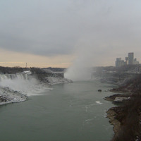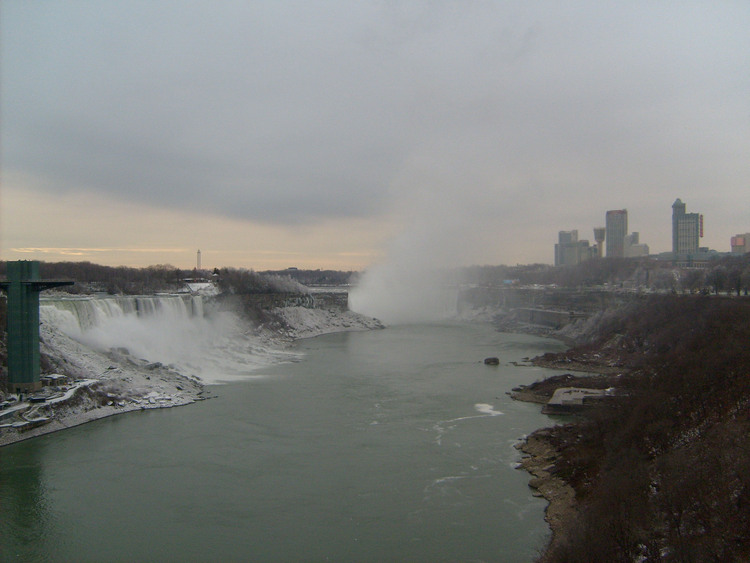 - en-CA Weather conditions in Niagara Falls when the photo was taken: Wind: south, 13 km Temp: -3° C Overcast Time: 8:49 a.m. This photo from Rainbow bridge, where concrete meets steel part of bridge.