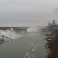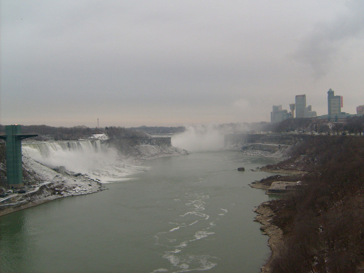 - en-CA Weather conditions in Niagara Falls when the photo was taken: Wind: east, 11 km Temp: -2° C Overcast Time: 8:24 a.m. This photo from Rainbow bridge, where concrete meets steel part of bridge.