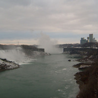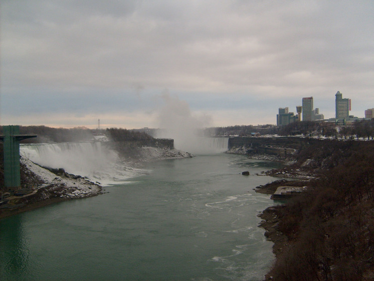 - en-CA Weather conditions in Niagara Falls when the photo was taken: Wind: west, 17 km Temp: 1° C Cloudy Time: 8:43 a.m. This photo from Rainbow bridge, where concrete meets steel part of bridge.