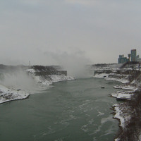- en-CA Weather conditions in Niagara Falls when the photo was taken: Wind: west, 17 km Temp: -8° C Light snow Time: 8:41 a.m. This photo from Rainbow bridge, where concrete meets steel part of bridge.
