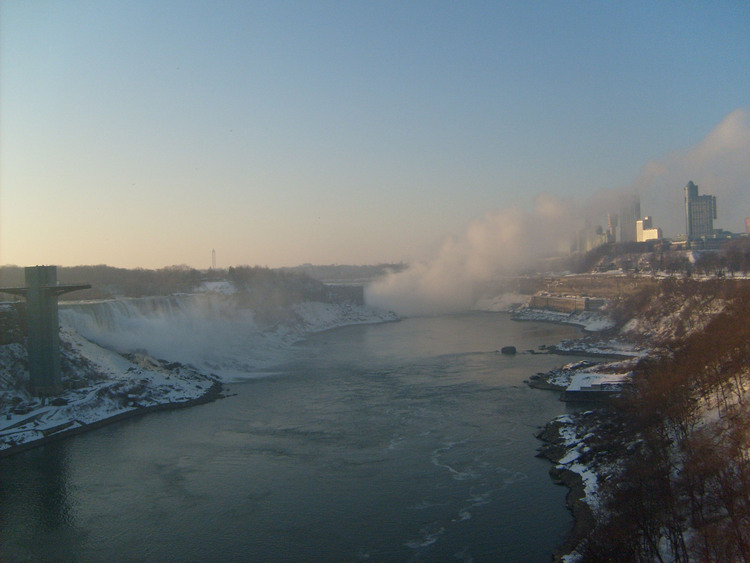 - en-CA Weather conditions in Niagara Falls when the photo was taken: Wind: east, 17 km Temp: -4° C Clear Time: 8:46 a.m. This photo from Rainbow bridge, where concrete meets steel part of bridge.