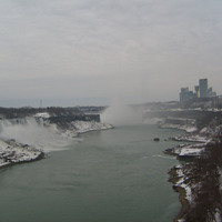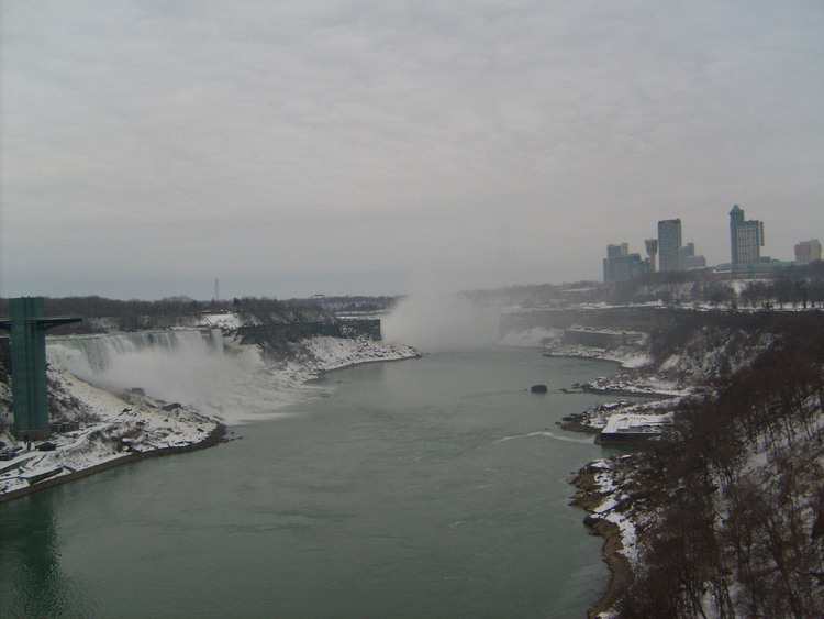 - en-CA Weather conditions in Niagara Falls when the photo was taken: Wind: south, 15 km Temp: 4° C Overcast Time: 8:53 a.m. This photo from Rainbow bridge, where concrete meets steel part of bridge.