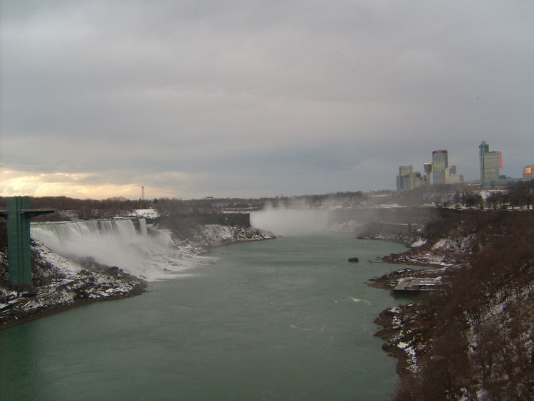 - en-CA Weather conditions in Niagara Falls when the photo was taken: Wind: south, 39 km Temp: 9° C Cloudy Time: 8:25 a.m. This photo from Rainbow bridge, where concrete meets steel part of bridge.
