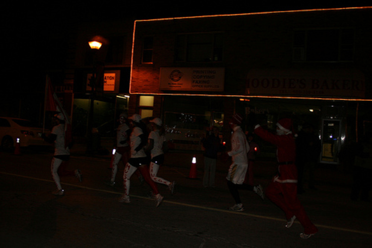 - 2010 Olympic Torch Relay in Niagara Falls - St. Michael's Mustangs at Head of Procession on Queen Street in Front of Moodie's Bakery 2