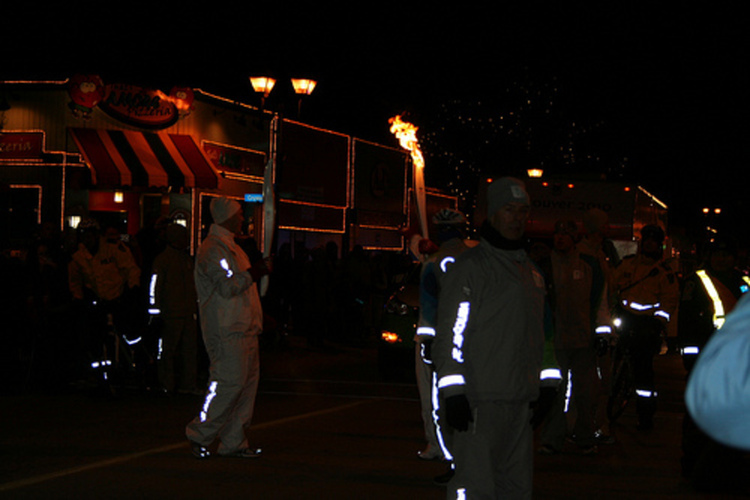 - 2010 Olympic Torch Relay in Niagara Falls - Torch Being Carried Down Queen Street & Passed on to Next Torchbearer