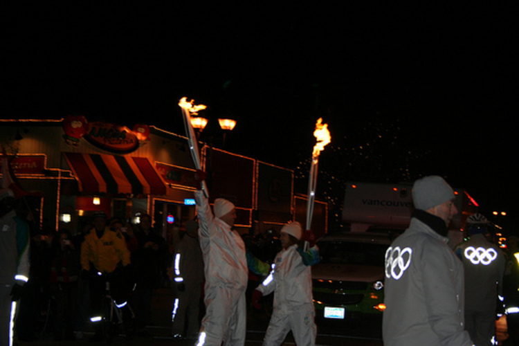 2010 Olympic Torch Relay in Niagara Falls - Torch Being Carried Down Queen Street & Passed on to Next Torchbearer 4
