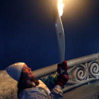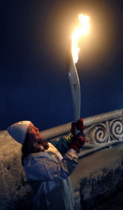 - 2010 Olympic Torch Relay in Niagara Falls - Hannah Termaat, Torchbearer 201 Holding Torch Aloft at Table Rock