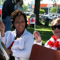 - Canada Day July 1 2010 at Niagara Falls - revellers waving the Canadian flag