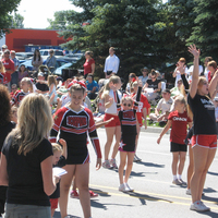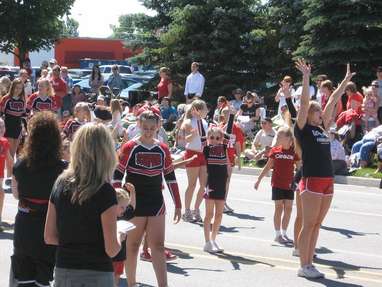 Canada Day July 1 2010 at Niagara Falls - Supercheer Scorpions performing in the parade, on Morrison Street
