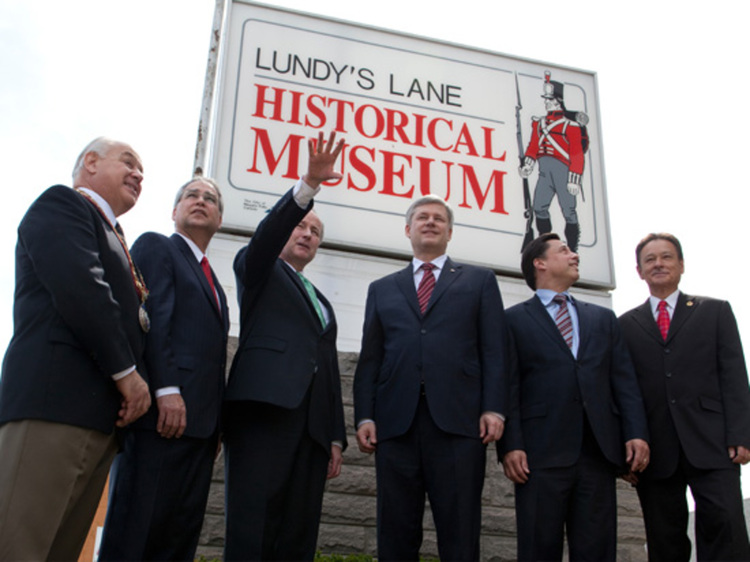 - en-CA left to right - His Worship Mayor Ted Salci; Honourable Gary Goodyear, Minister of State; Honourable Rob Nicholson, MP for Niagara Falls & Minister of Justice; Prime Minister Stephen Harper; Ontario Infrastructure Minister Brad Duguid; Niagara Falls MPP Kim Craitor