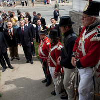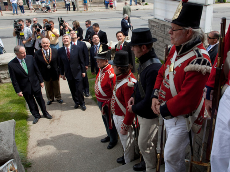 - en-CA left to right - Honourable Rob Nicholson, MP for Niagara Falls & Minister of Justice; His Worship Mayor Ted Salci; Prime Minister Stephen Harper; Honourable Gary Goodyear, Minister of State; ; Ontario Infrastructure Minister Brad Duguid; Niagara Falls MPP Kim Craitor