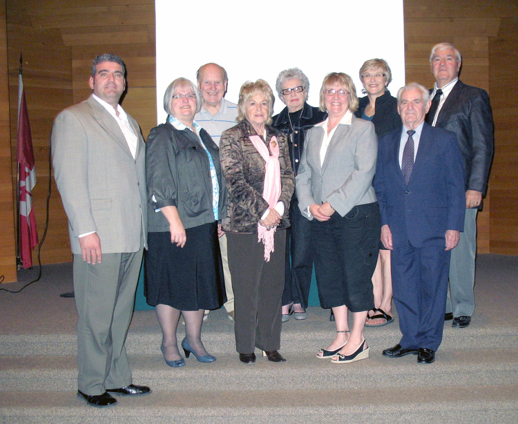 - Back row L-R: Ken Smith, Nancy Eidt, Anne Andres-Jones, Carman Dix Chairman ; Front row: L-R: Dino Fazio, Barbara Ness, Councillor Shirley Fisher, Renni Piscitelli, Eric Sheridan ; location: LaMarsh Room Victoria Avenue Library ;