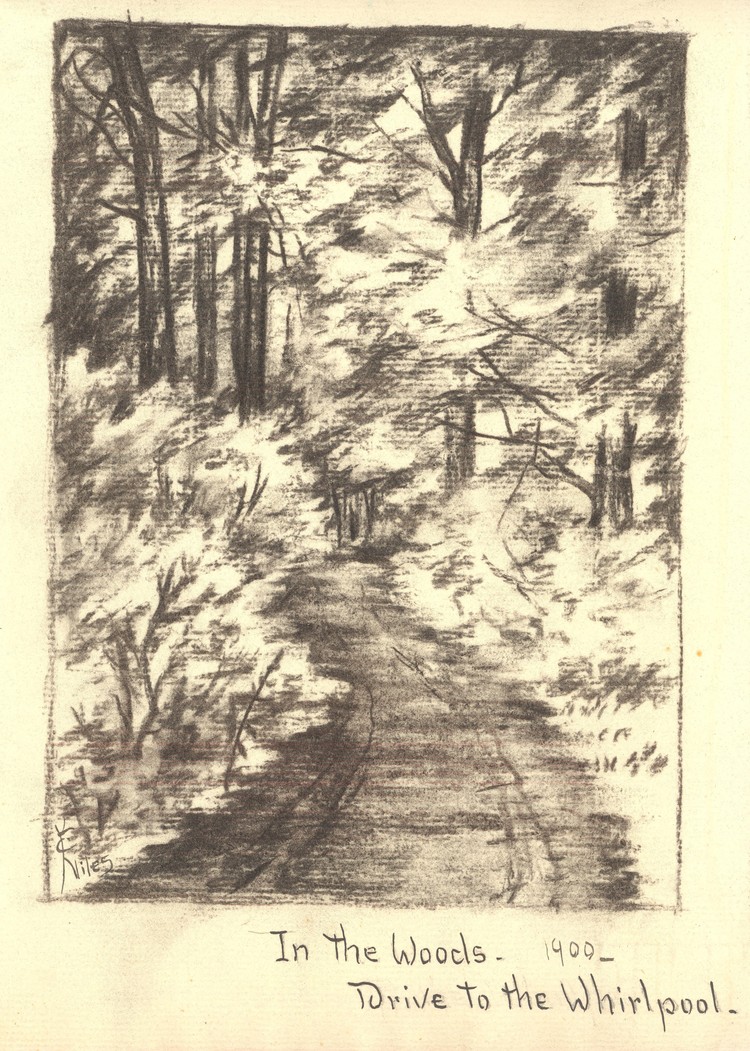 - en-CA A sketch of a roadway in Niagara Falls, N.Y that is surrounded by trees and goes to the Whirlpool done by Katie C. Niles
