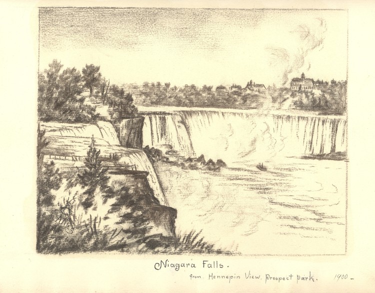 - en-CA This is a sketch of both the American and Horseshoe Falls taken from Hennepin View, Prospect Park and done by Katie C. Niles