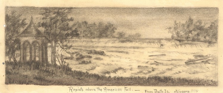 - en-CA A sketch of the rapids above the American Falls taken from bath Island and done by Katie C. Niles