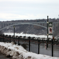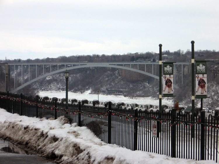 - The Rainbow Bridge and The Niagara Gorge viewed from the Rink at the Brink in Queen Victoria Park ;