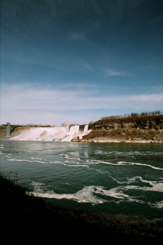 - en-CA View of the American Falls, the Niagara Falls observation tower and Niagara River taken from the Ontario Power Generating Station
