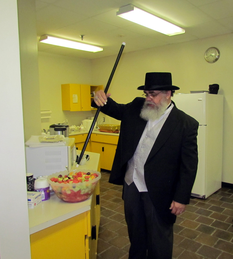 Niagara Falls Public Library Celebration of the Marriage of Prince William and Kate Middleton - Andrew Porteus Pretending to Stir the Fruit Salad With His Cane