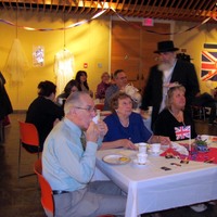 Niagara Falls Public Library Celebration of the Marriage of Prince William and Kate Middleton - Terry Schrader, Eileen Schrader, & Monika Seymour Watching the Ceremony