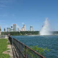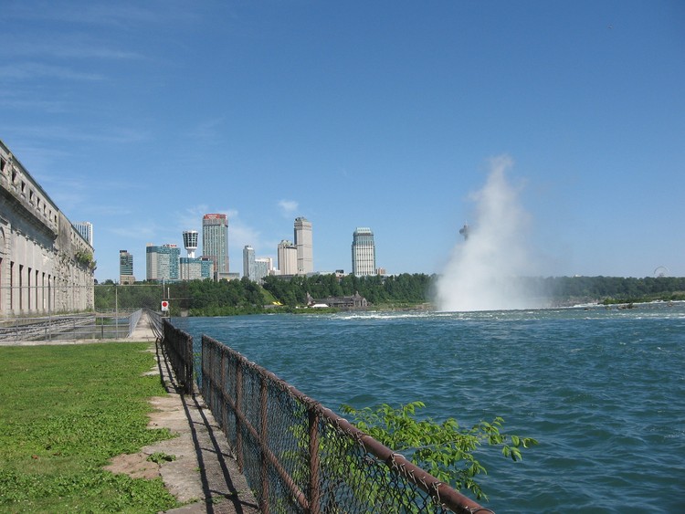 - Skyline of Niagara Falls in background ; Toronto Power Plant building (left) ;