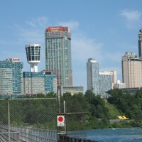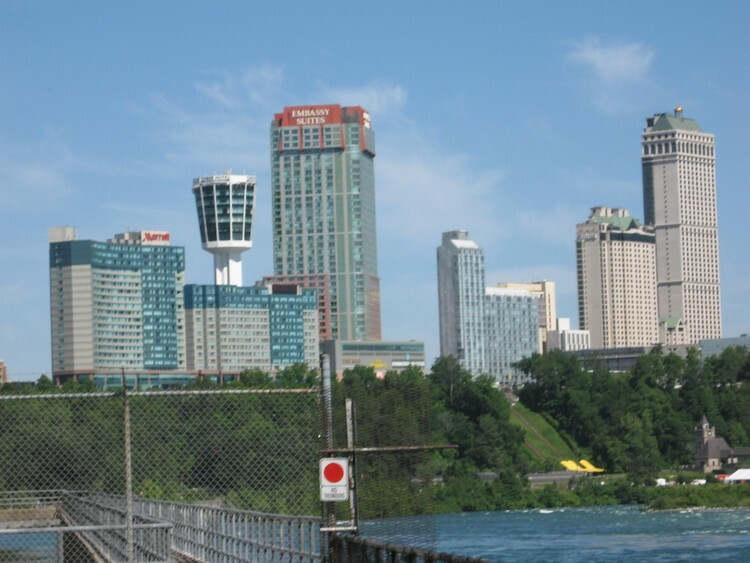 - L-R:Marriott Hotel, Minolta Tower, Embassy Suites Hotel, Niagara Fallsview Casino, Hilton Hotel ;