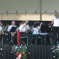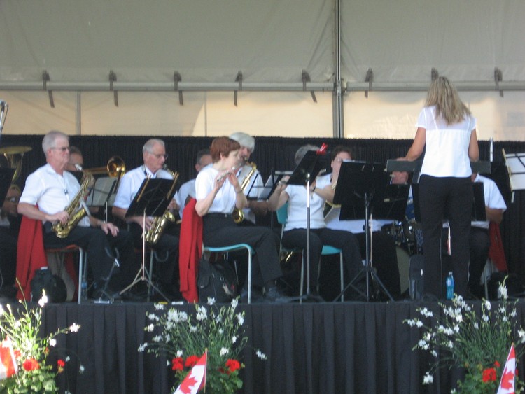 - Niagara Falls Concert Band performing prior to the arrival of the parade ; R-L: Conductor Brenda Fairchild-Green, Carol Cowlishaw flute, Colin Saunders tenor sax, Bruce Rolls alto sax ;