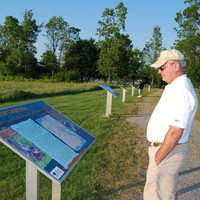 - en-CA Spectator reading one of the historical plaques describing the battle