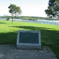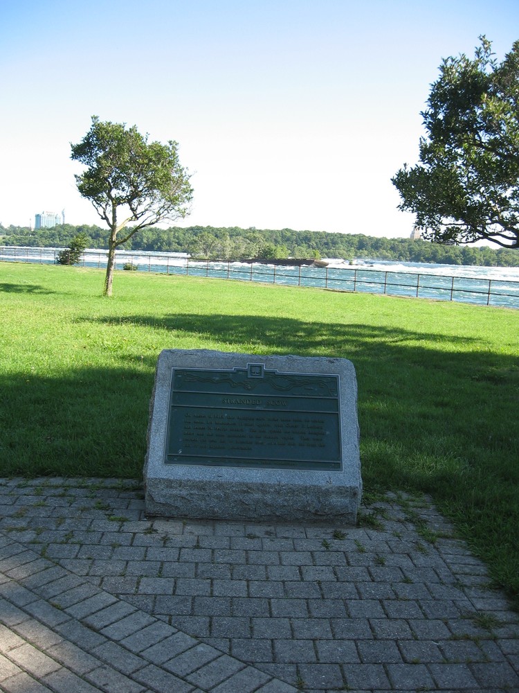 - en-CA Stranded scow plaque with the old scow in the upper Niagara River in the background.