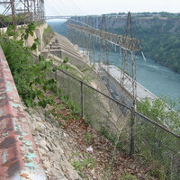 - en-CA Sir Adam Beck II Generating Station with the Queenston-Lewiston bridge and the lower Niagara River in the background