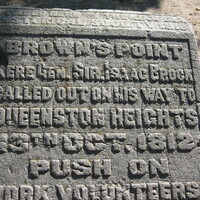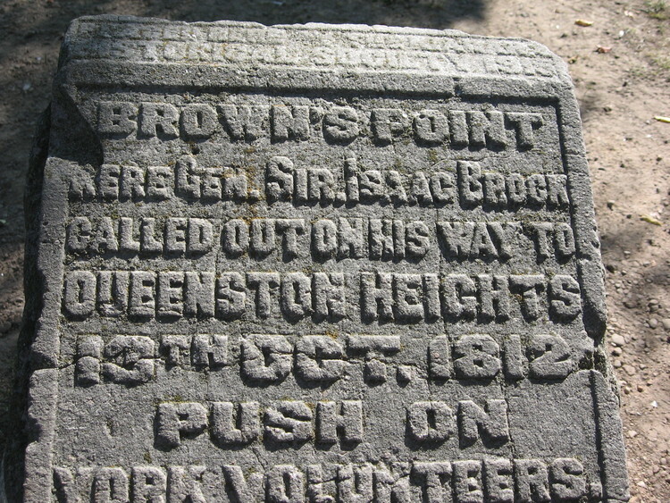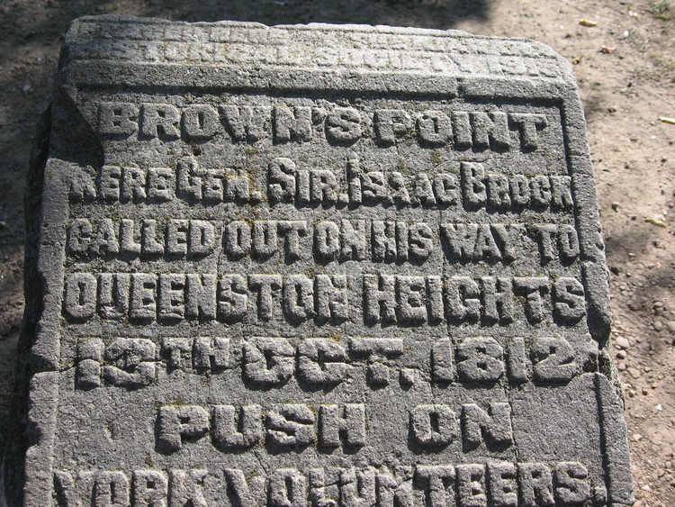 - en-CA Brown's Point monument which reads "Here General Sir Isaac Brock called out on his way to Queenston Heights 13th October 1812 Push on York volunteers".