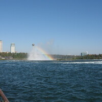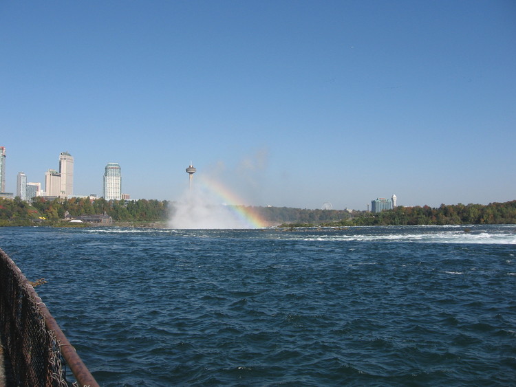 - Fall Colours and Rainbow at the Brink of the Falls with Niagara Falls Skyline