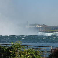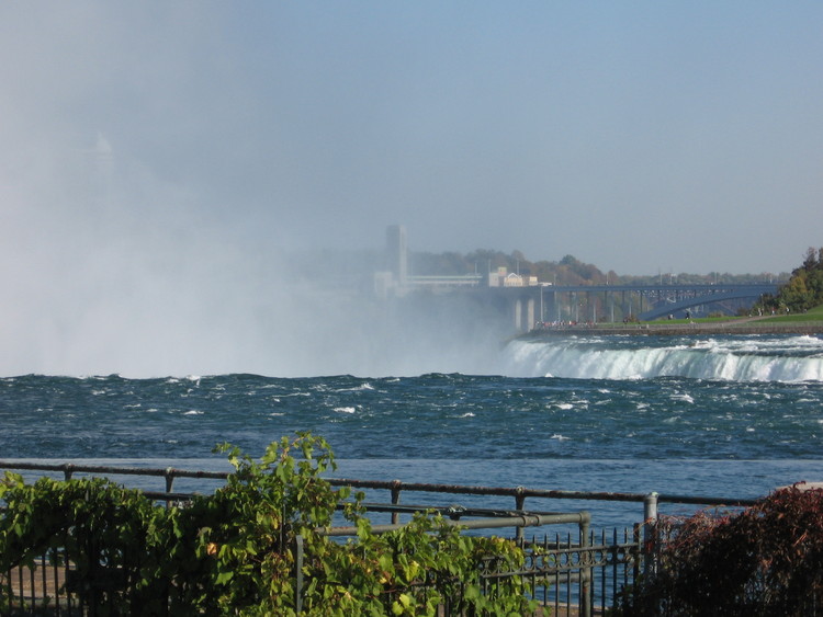 - en-CA Upper Niagara River and the brink of Horseshoe Falls with the Rainbow Bridge in the background.