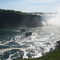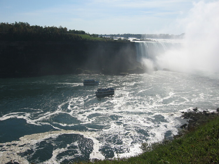 - en-CA Two Maid of the Mist boats with part of the Horseshoe Falls in the background.