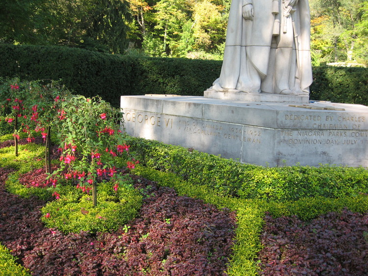 - en-CA George the VI statue in Queen Victoria Park. Inscription reads " George VI King of Canada 1936-1952. A very gallant gentleman." "Dedicated by Charles Daley Chairman of the Niagara parks Commission Dominion Day July 1 1963."