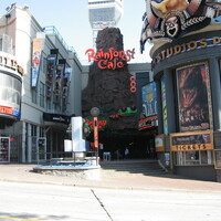 - en-CA Clifton Hill. The Pile Driver Retail Store, Rainforest Cafe and MGM Studios Plaza.