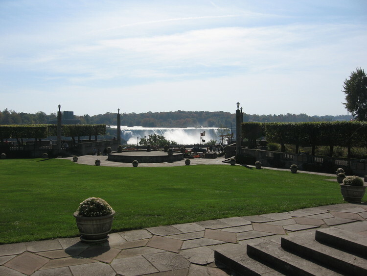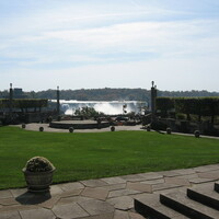 - en-CA Oakes Garden Theatre with the American Falls in the background.