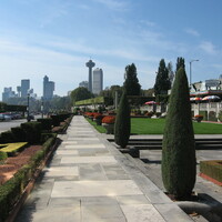 - en-CA Oakes Garden Theatre with hotels in the background.